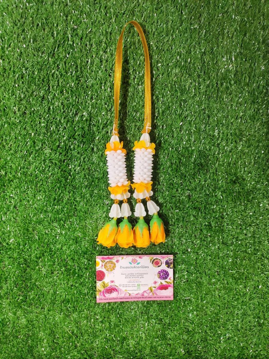 มาลัยกรมะลิคาดตามาลัยชายกระดิ่งสีเหลือง 12 เส้น