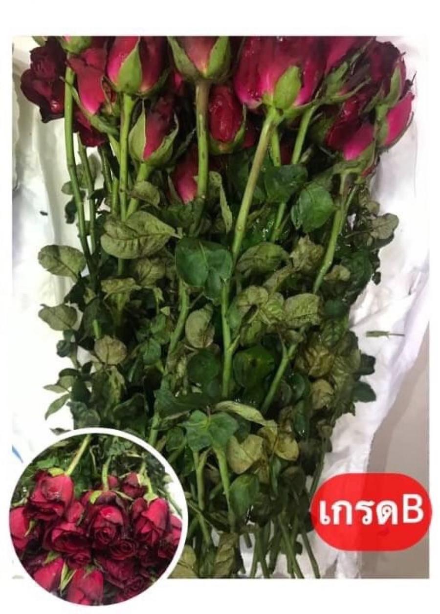 #ราคากุหลาบสีแดงแก้บนสั้น50ดอกเกรดB120บาทเกรดA140บาท