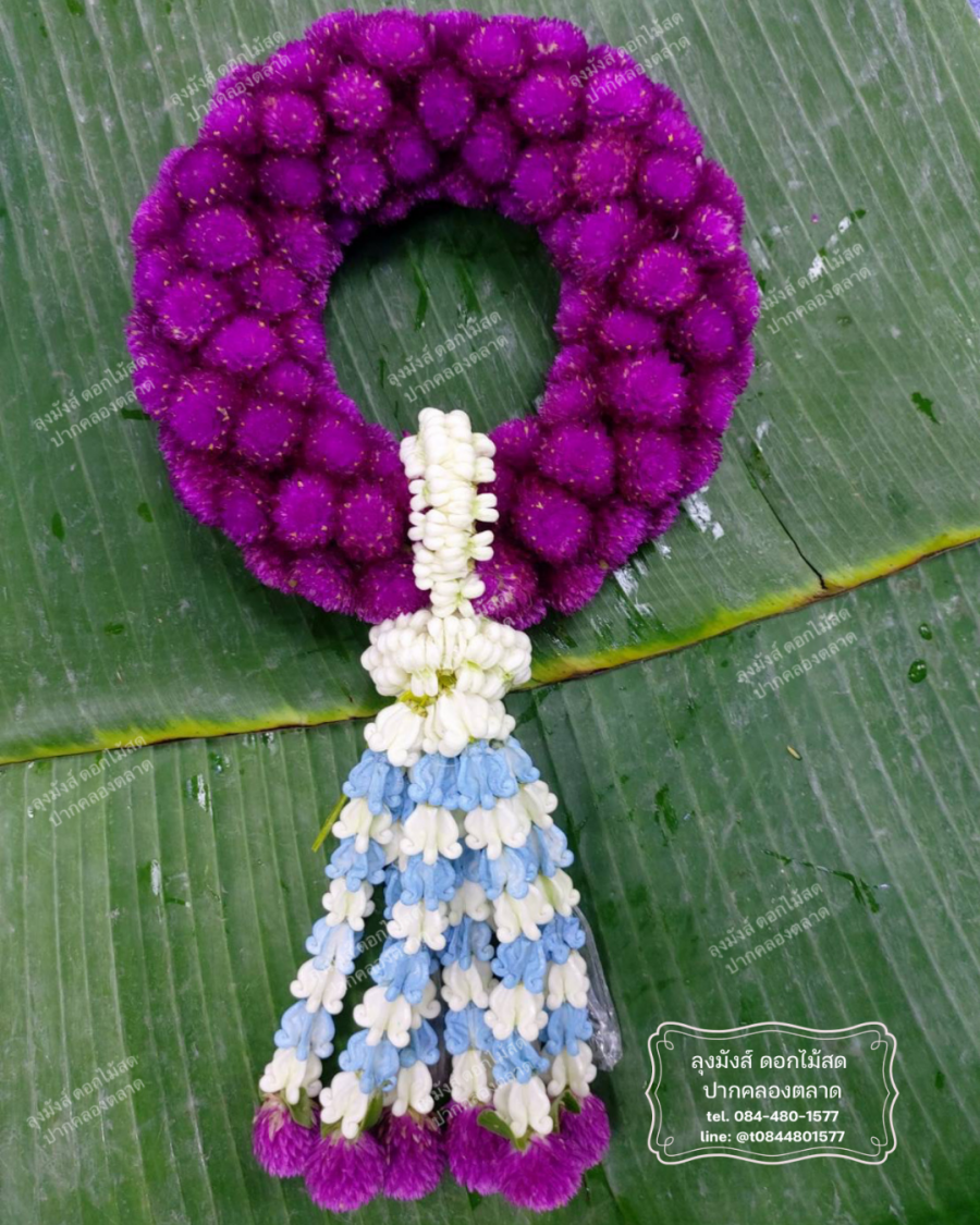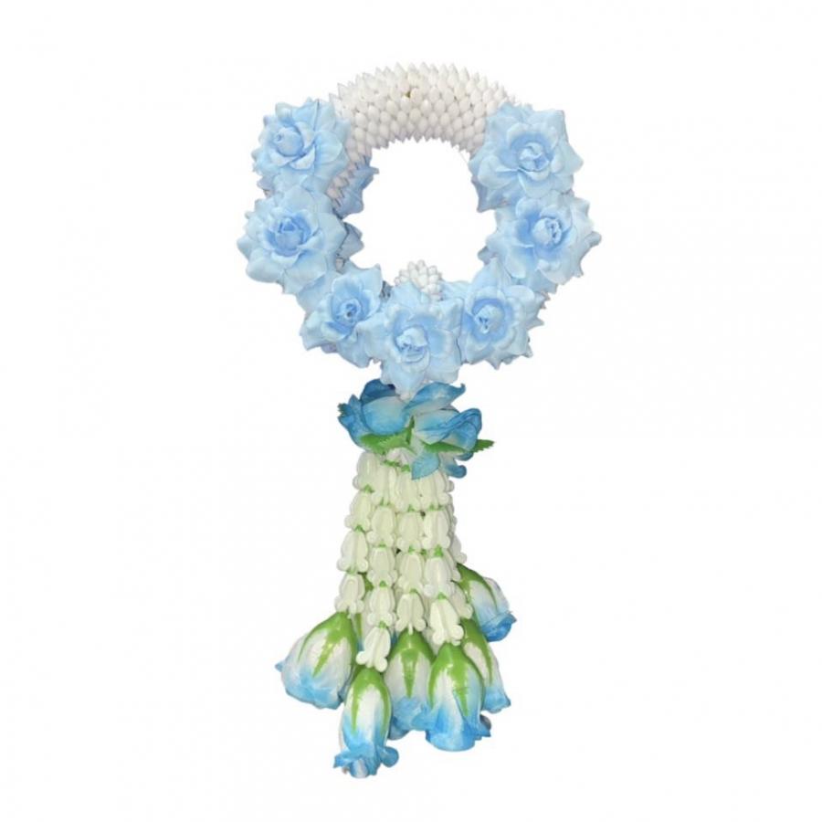 พวงมาลัยกรสามชาย ชายจำปี สีฟ้า