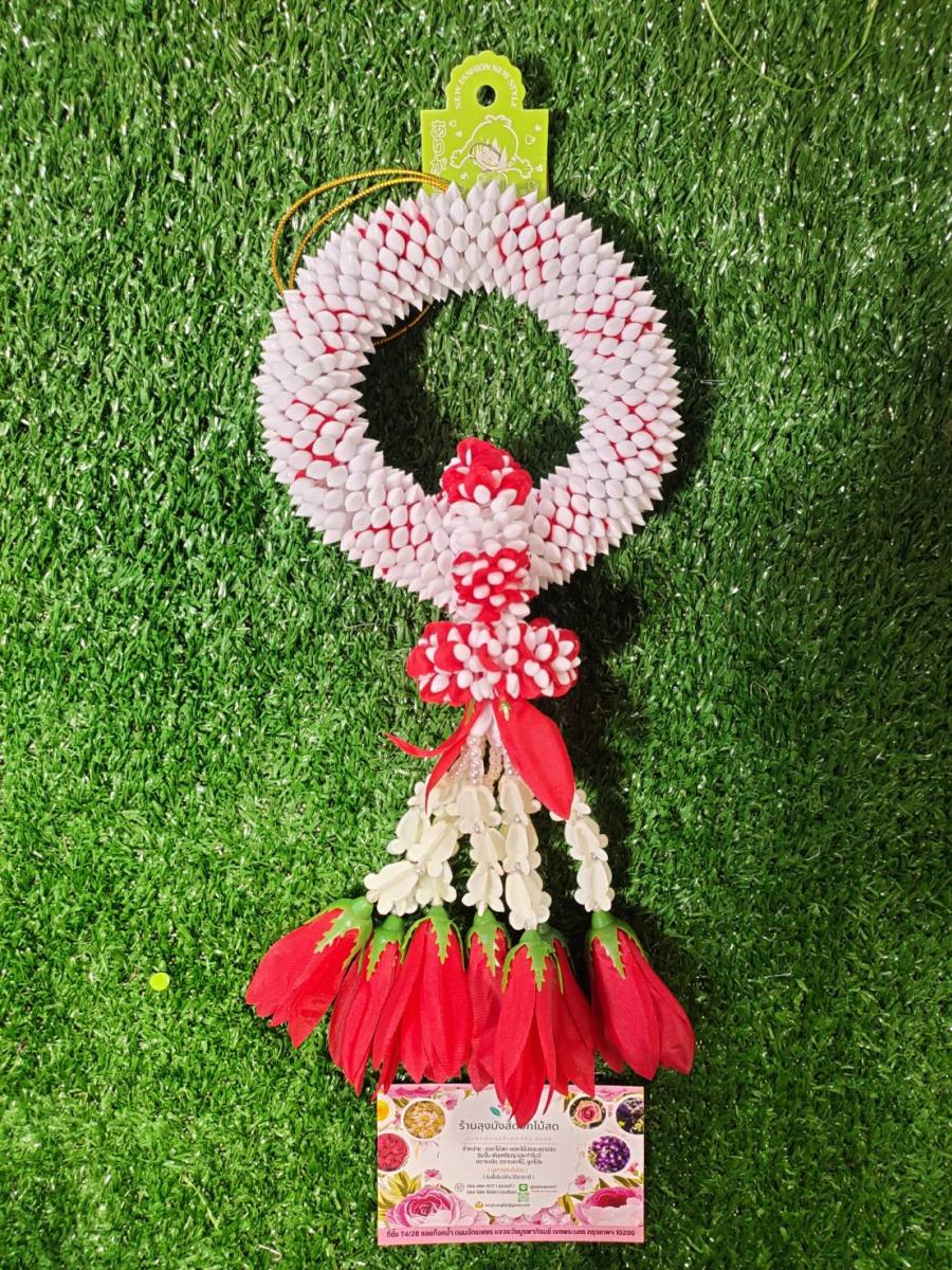 #ราคาพวงมาลัยกุหลาบแดงแก้บน100ดอก150บาท